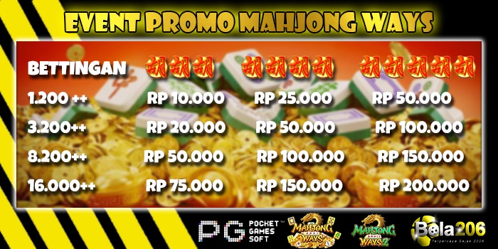 BOLA206 menghadirkan Event Scatter Mahjong Ways dengan hadiah melimpah untuk semua member. Raih kemenangan besar, kumpulkan scatter, dan nikmati bonus menarik setiap harinya!
